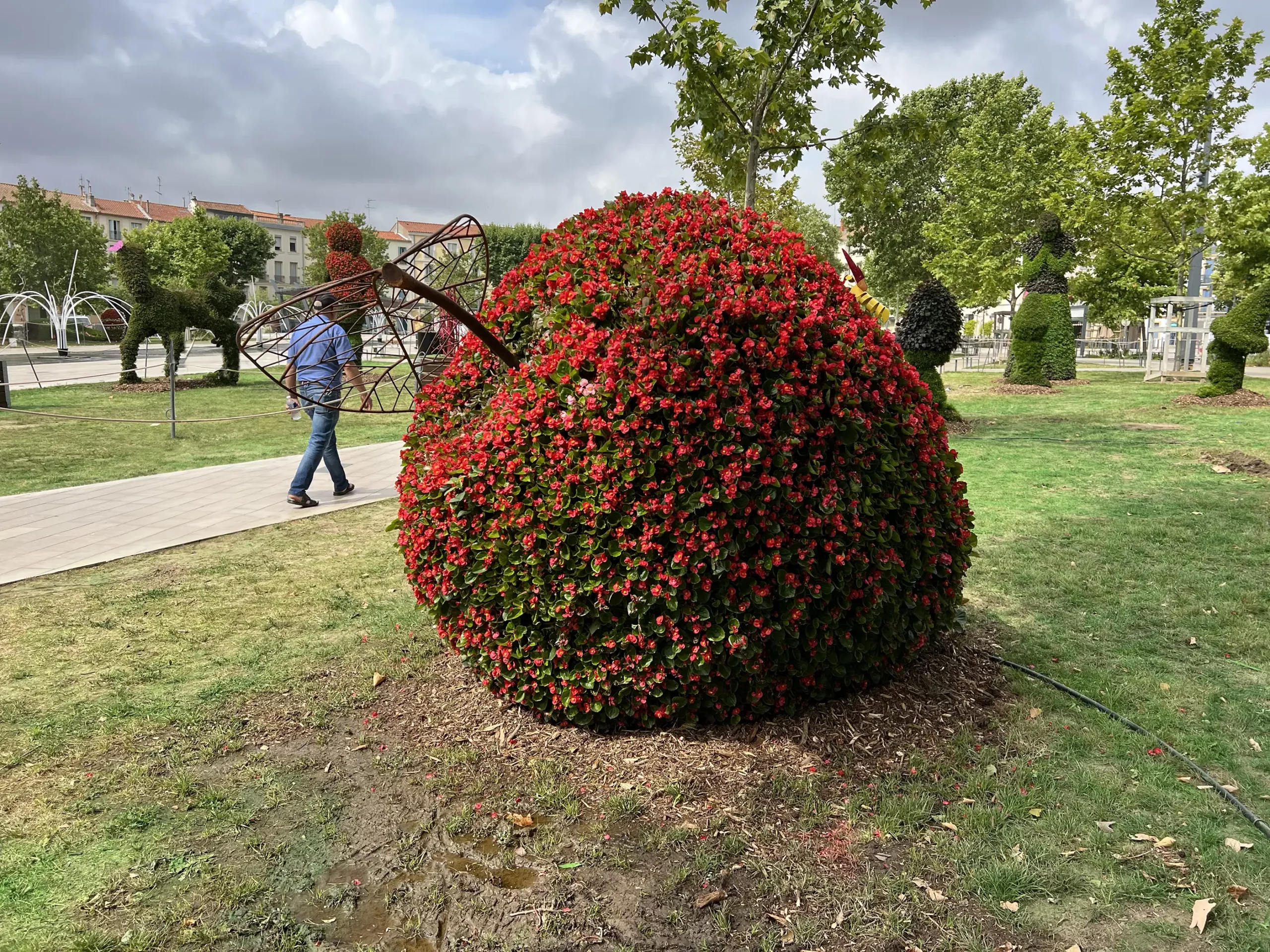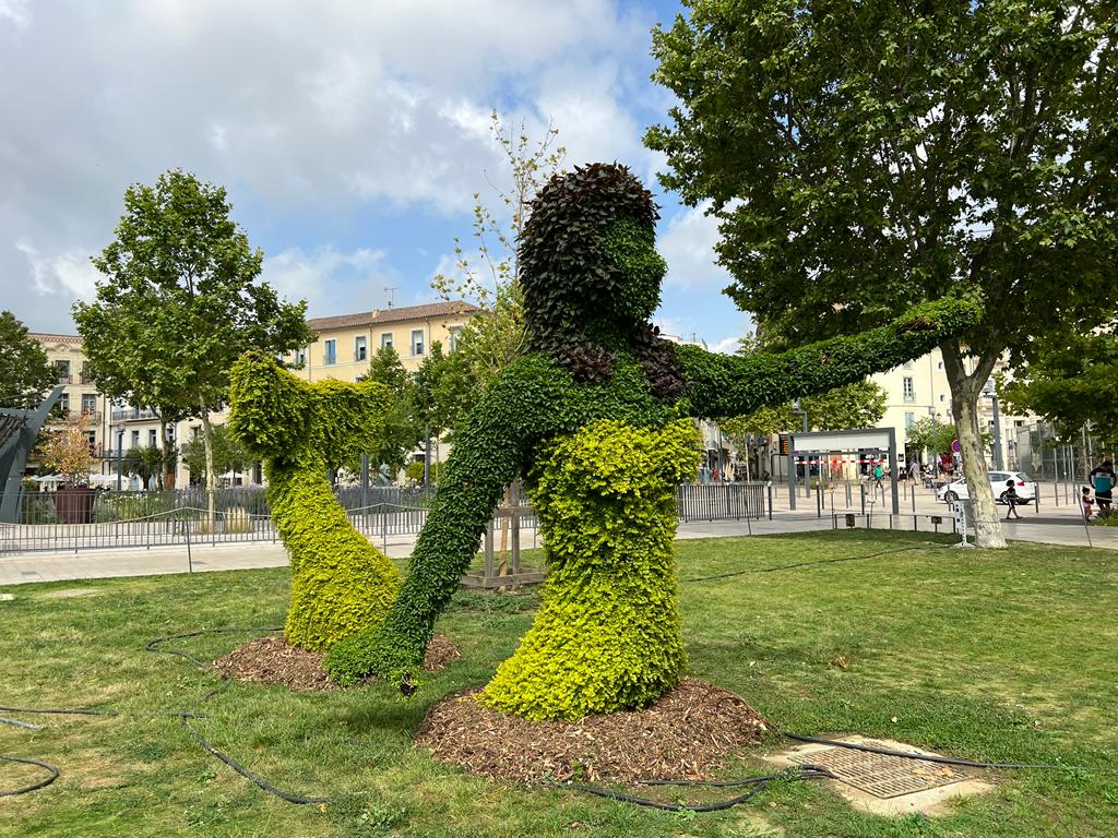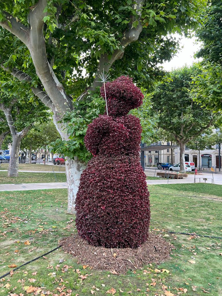 L’Art topiaire est souvent mis en scène à grande échelle à travers les villes : sur des ronds points, plates bandes, endroits stratégiques… Ainsi, girafes ou éléphants se côtoient dans des décors appropriés. La rue devient un lieu de rendez-vous et d’échanges, visible par tous… grands et petits. Les topiaires créent l’événement. C’est aujourd’hui la population entière qui nous demande plus de créativité et d’audace dans le fleurissement urbain.