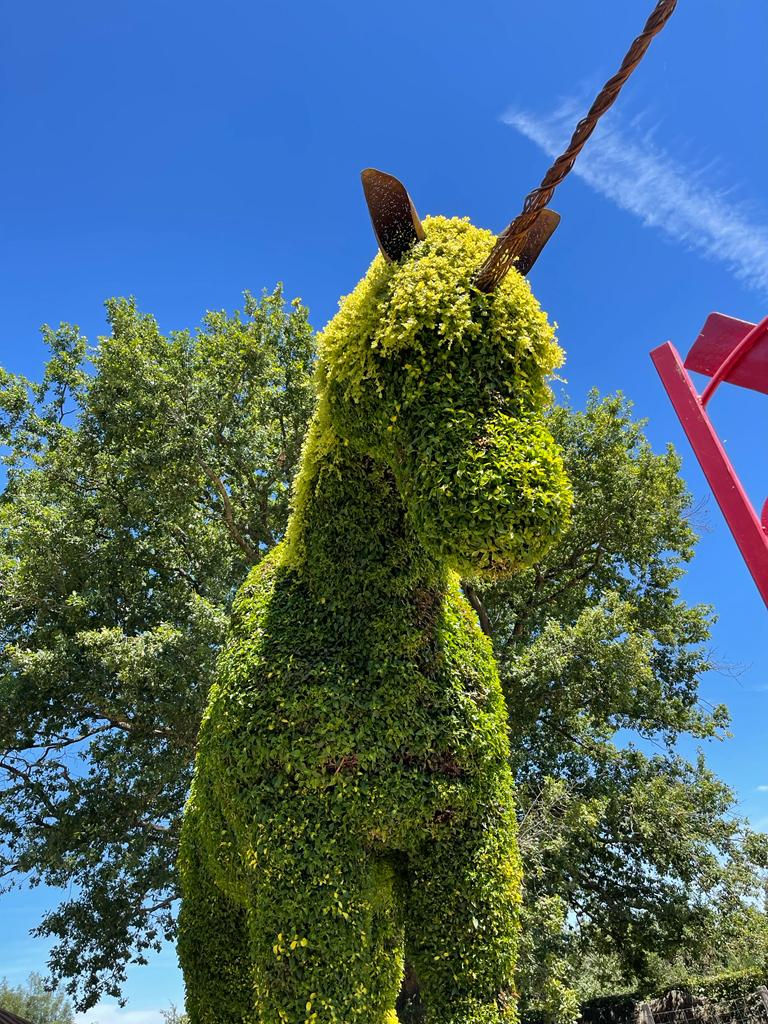 L’art topiaire consiste à créer des structures de formes variées, objets, animaux en métal… Mais d’en sublimer la forme par le végétal.